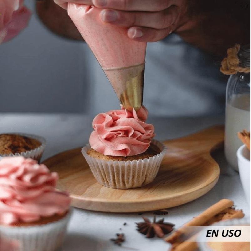 ¿Qué es?: es una herramienta de cocina en forma de bolsa cónica donde la parte más estrecha es donde colocamos la boquilla y la parte más ancha es por donde introducimos el relleno. Se utiliza principalmente para decorar tartas, cupcakes, pasteles y galletas