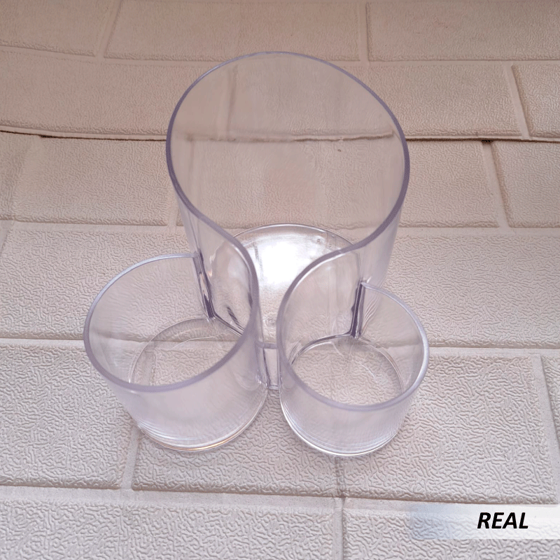 ¿Cómo funciona? Para mantener todos sus cosméticos perfectamente organizados en un hermoso exhibidor y al alcance de su mano. Los 3 compartimentos cilíndricos están conectados en la base. No necesita instalación solo coloque en un lugar de su preferencia y acomode sus brochas y maquillaje
