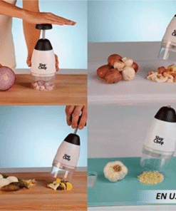 ¿Qué es?: es una máquina picadora manual que corta alimentos cuando golpeas el émbolo.
